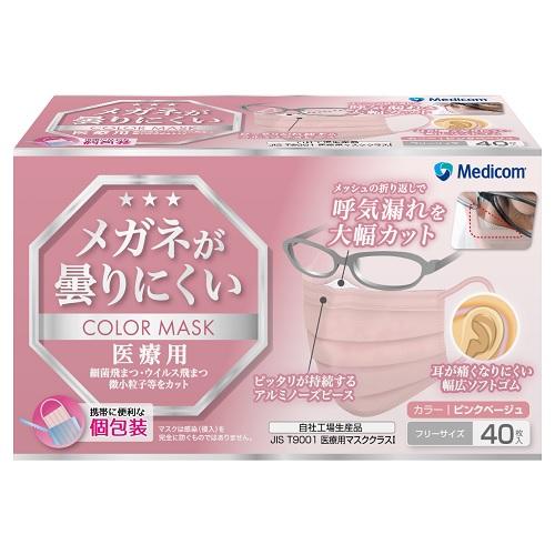 メディコム 眼鏡が曇りにくいカラーマスク ピンクベージュ 40枚 返品種別A