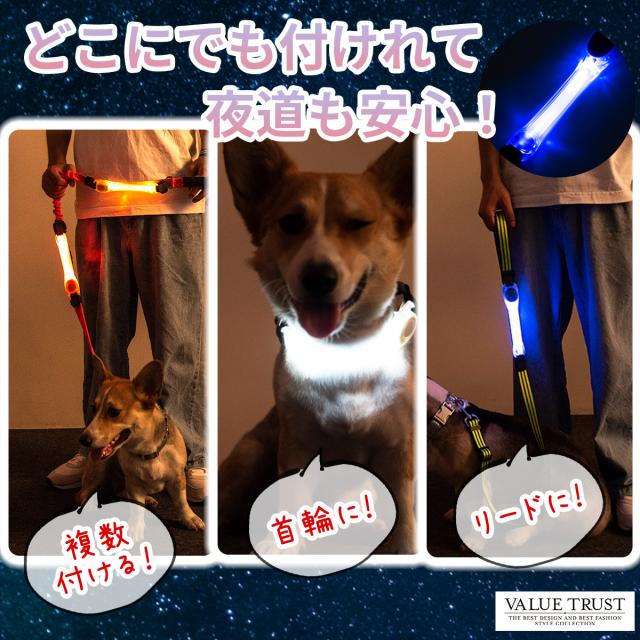 犬 お散歩ライト LED 夜間 夜 ライト 光る 首輪 リード 小型犬 中型犬 ペット 反射 視認性 電池式