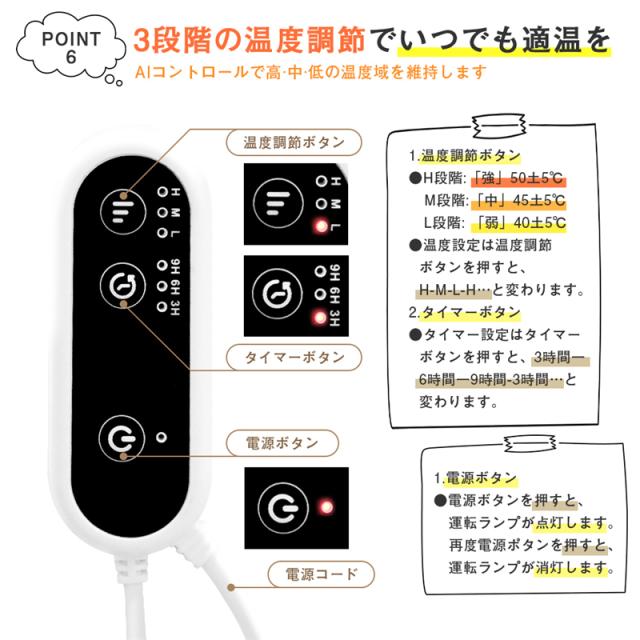三段階温度調節:高・中・低の3段階の温度調節でいつでも適温を。