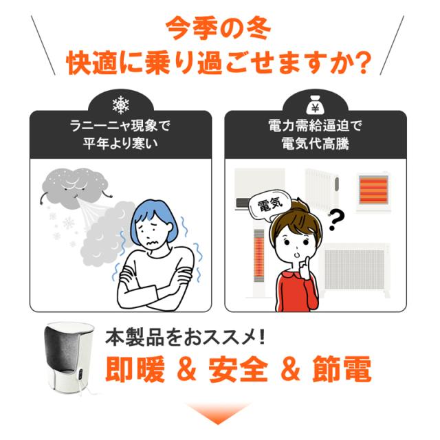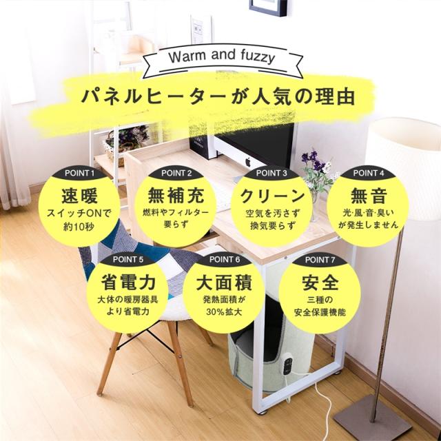 【冬の人気暖房器具】コンパクトな暖房器具として人気のパネルヒーター。空気が乾燥しない、換気の必要がない、燃料補充やフィルター交換が要らない、音が静かなどメリットが多く、小さな子供やペット、高齢者のいる家庭などを中心に注目を集めています。