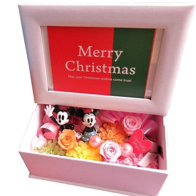 クリスマスプレゼント ディズニー 写真立て ミッキー ミニー フォトフレーム 花 プレゼント 枯れない プリザーブドフラワー入り