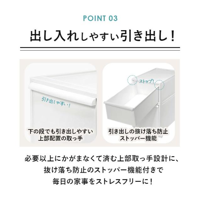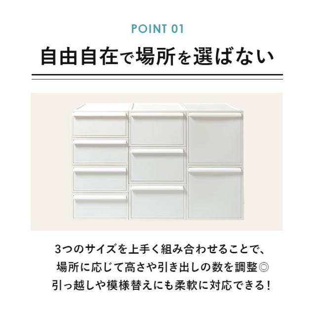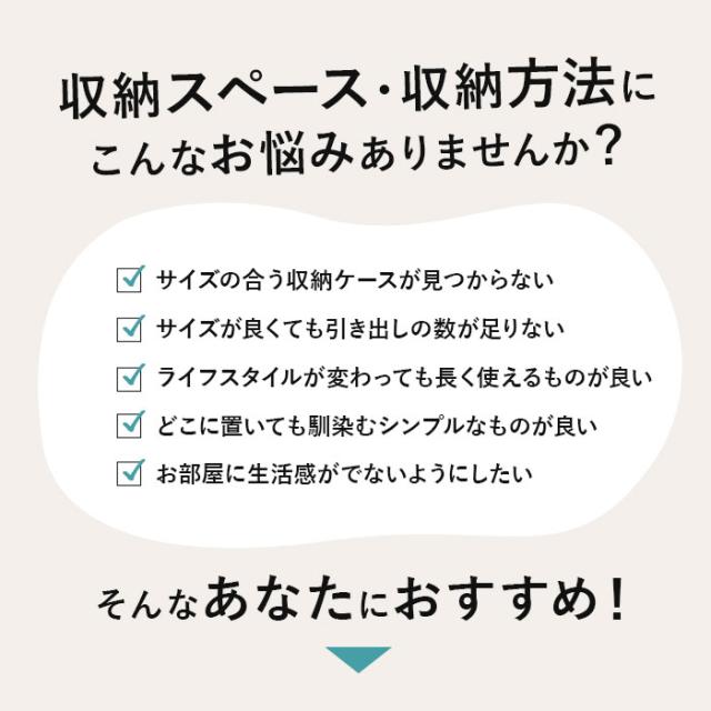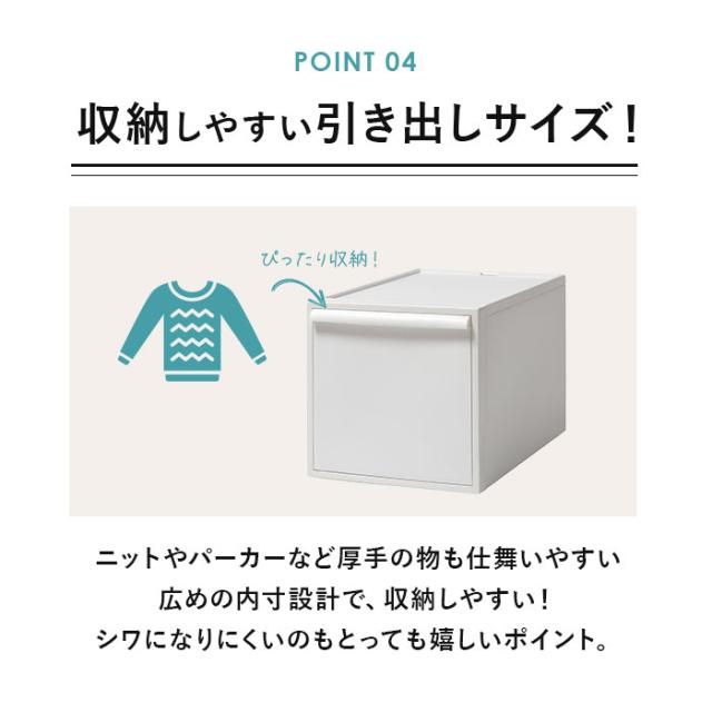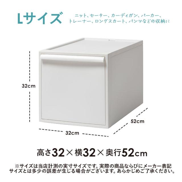 | 商品説明 | ・使う場所、収納する物、使いやすさを考えた「クローゼットシステムセット L」2個組が登場。 ・幅広いニーズに応える、クローゼットシステム。出し入れしやすい引き出しタイプ。 ・全面フラット形状で使い勝手抜群。簡単にスタッキングOK! ・置く場所を選ばず使える、ツヤのないマットな質感。中身が見えることなく、生活感を隠せる不透明カラー。 ・折りたたんだ衣類などを収納しやすい内寸設計。 ・ニット、セーター、カーディガン、パーカー、トレーナー、ロングスカート、パンツなどの収納に便利なLサイズ。 ・下の段でも引き出しやすいよう、上部に取っ手を配置。必要以上にかがむ必要がなく、体への負担を軽減。 ・引き出しの抜け落ちを防ぐストッパー機能付き。 ・積み重ね時にズレにくく、倒れにくい!背面ロック機能付きで安全◎ ・枠には、変形を防ぐ頑丈な素材を使用。積み重ねたり、上に物を置いてもたわみにくいのがポイント。 ・当店別ページで販売中、サイズ違いのクローゼットシステムセットと高さが揃う、モジュールシステム設計!魅せる収納が簡単に実現。(※Sサイズ商品コード:csd14p、Mサイズ商品コード:csd23p) ・収納をよりスマートに。生活スタイルに合わせてカスタマイズ!安心の日本製。 |