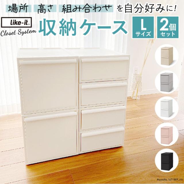 収納ケース 引き出し 通販 クローゼットシステム L 2個組 ライクイット like it 収納 収納ボックス 衣装ケース 幅 32cm 奥行 52cm 衣装ボックス 押し入れ収納 プラスチック 白 ベージュ グレー 押入れ収納ボックス シンプル おしゃれ インテリア