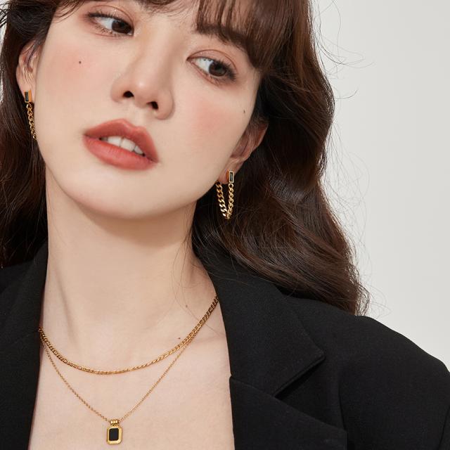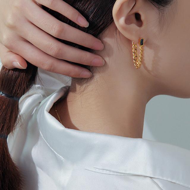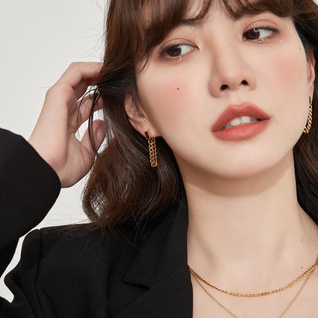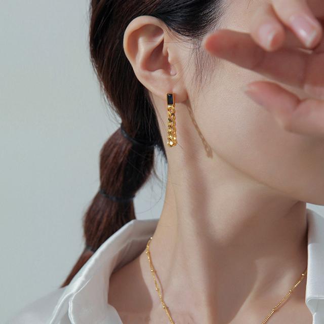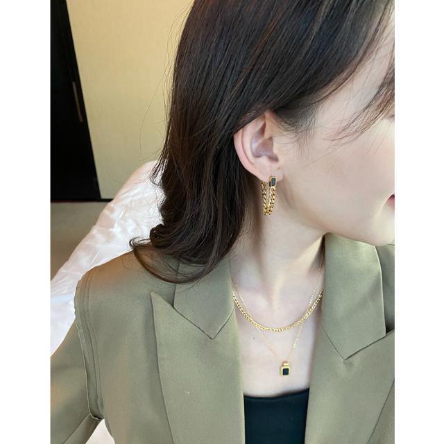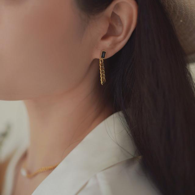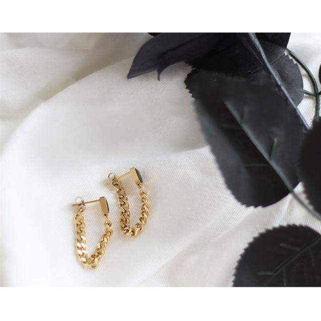 ピアス レディース 18K 金属アレルギー対応 揺れる チェーン サージカルステンレス316Lゴールド ブラック カジュアル プレゼント ギフト 仕事 オフィス