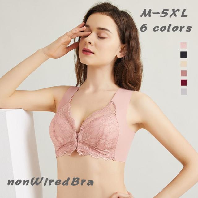 ノンワイヤーブラ フルカップ ブラジャー レディース インナー フロントホック 脇高 ナイトブラ バックシームレス レース