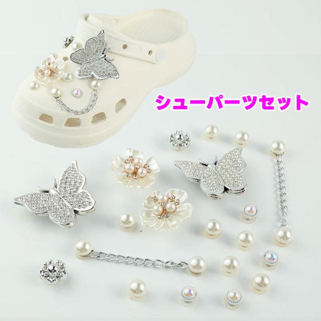 シューパーツセット クロックス用 シューアクセサリー レディース 女性 パール調 蝶 蝶々 花 フラワー チェーン アクセサリー