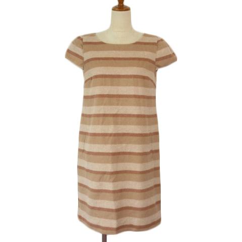 【中古】クリアインプレッション CLEAR IMPRESSION ワンピース ボーダー 半袖 ウール混 2 ベージュ レディース