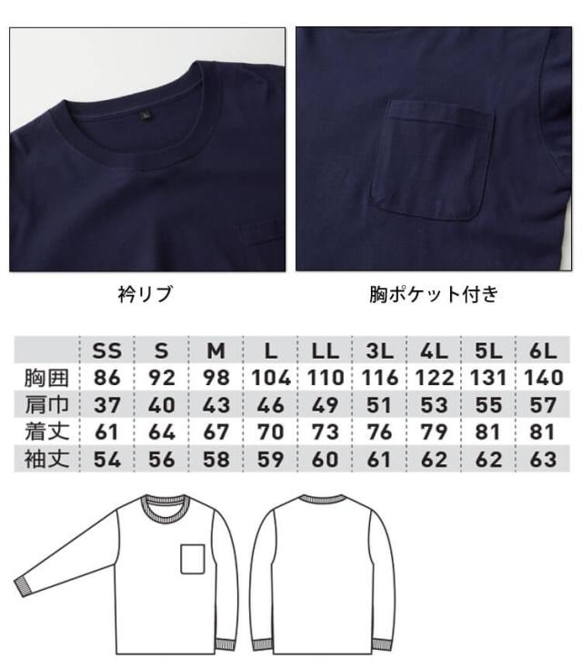 作業服 桑和 SOWA 長袖Tシャツ(胸ポケット付き) 6645-52 通年 SS〜3Lサイズ