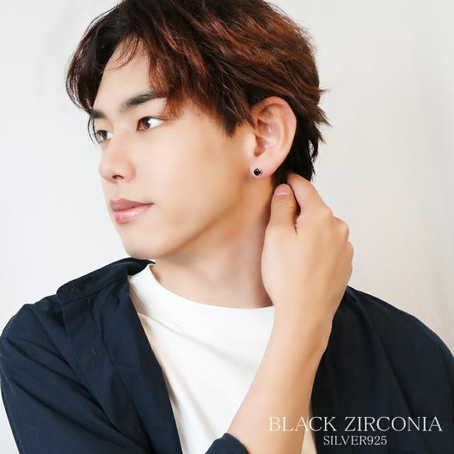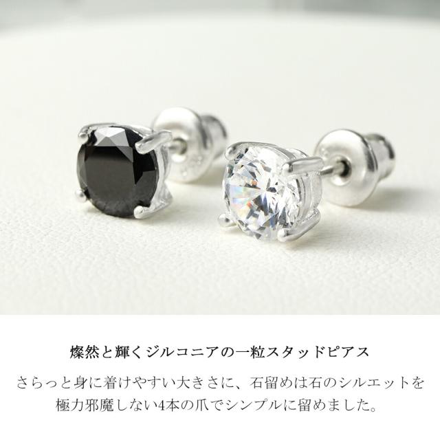 6mm ジルコニア ブラックジルコニア 一粒 シルバー ピアス 選べる 1P 片耳用 大粒 一粒ピアス シンプル キラキラ 高見え シルバー925 スタッド メンズ