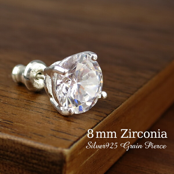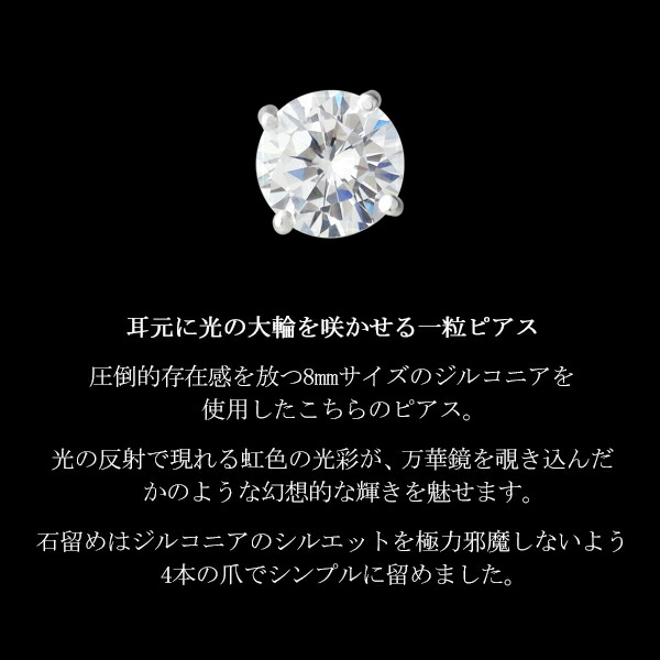ピアス シンプル 大きい 大粒 8mm 1P 片耳 ジルコニア 一粒 スタッドピアス セカンドピアス シルバー925 ベーシック 定番 一粒ピアス メンズピアス
