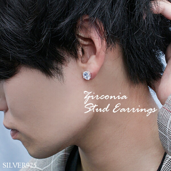 メンズ シルバーピアス シルバー925 キュービックジルコニア 【新宿 銀の蔵】