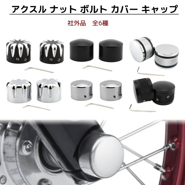 社外品 アクスル スライダー ナット ボルト カバー キャップ フロント 2個セット レンチ付き タイヤ カスタム 装飾