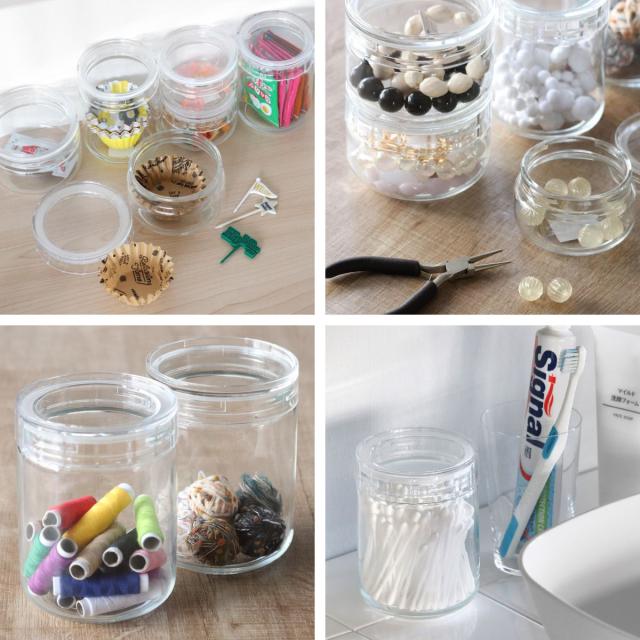 食品だけでなく、お弁当グッズや趣味の小物、コットンや綿棒など細々したものを入れるのにも最適です。シンプルなデザインなので、リビングや玄関、洗面所など家中で活躍します。
