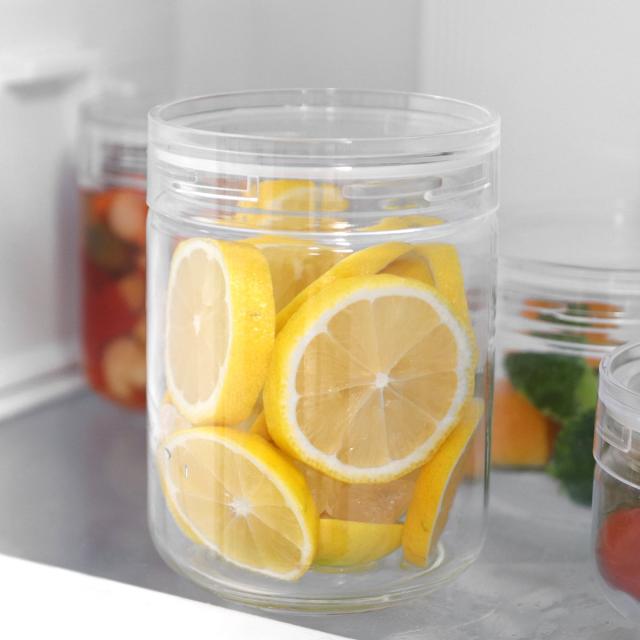 上からも横からも中身が見える完全透明な保存容器です。引き出しや戸棚、冷蔵庫などどこに置いても中身や残量がひと目で分かります。使う時に迷わずサッと取り出せるので、お料理が効率良く進みます。