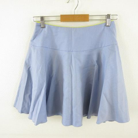 【中古】キューハート Q ミニスカート フレア ストレッチ 青 2 *E135 レディース