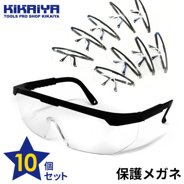 保護メガネ 伸縮式 10個セット セーフティゴーグル セーフティグラス 調節可能 ブラック 工事 板金 医療 実験 草刈り 伐採 KIKAIYA