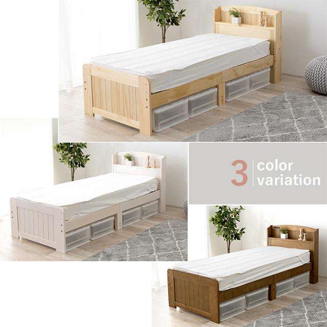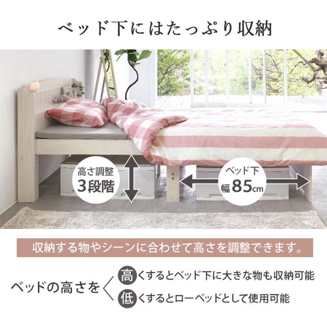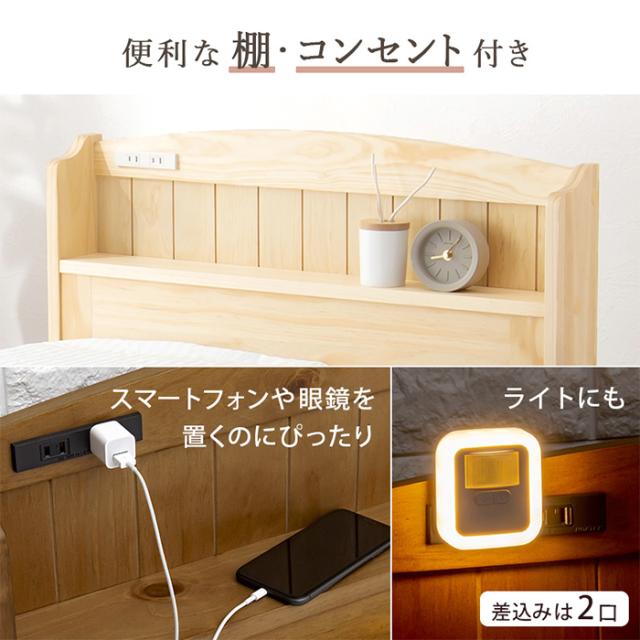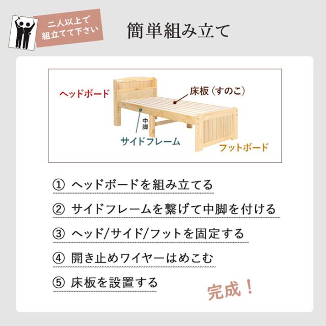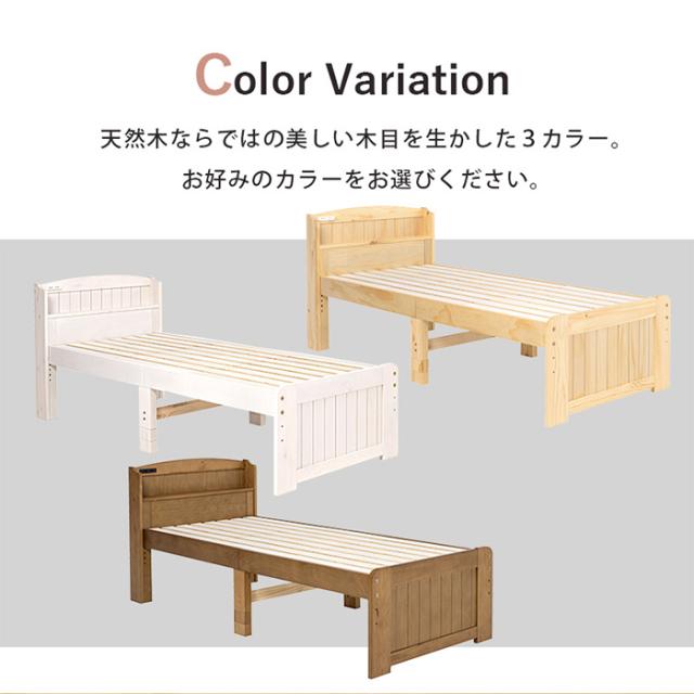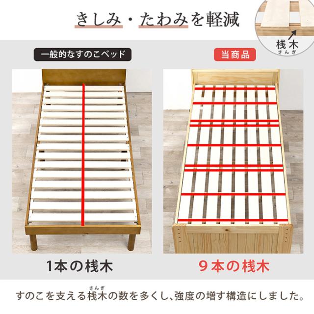 ベッド すのこベッド セミシングルショートベッド MB-5915SSS フレームのみ 宮棚付き コンセント付き 棚付き 単品 木製 高さ調整 頑丈 ナチュラル 一人暮らし