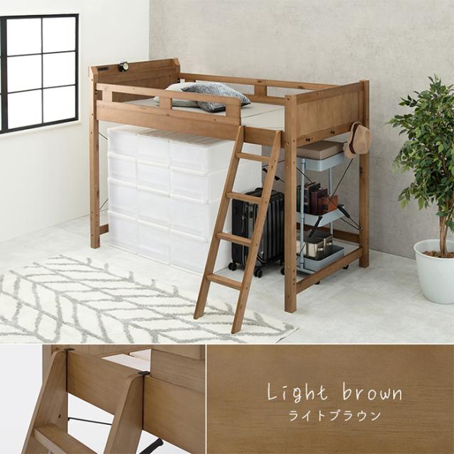 システムベッド おしゃれ ロフトベッド MB-5081-S 木製 シングルベッド 宮棚付き コンセント付 ハイベッド 床面高119.5cm ベッド下収納 大容量収納 はしご付き