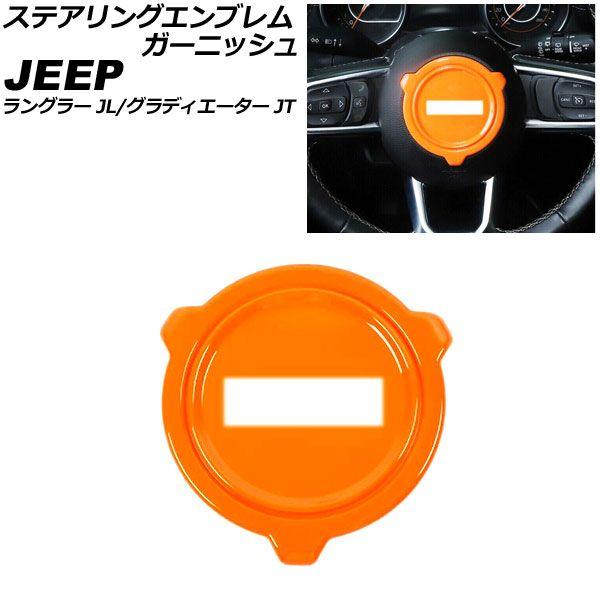 ステアリングエンブレムガーニッシュ ジープ ラングラー JL20L/JL36L/JL36S 2018年10月〜 オレンジ ABS製 AP-IT2302-OR