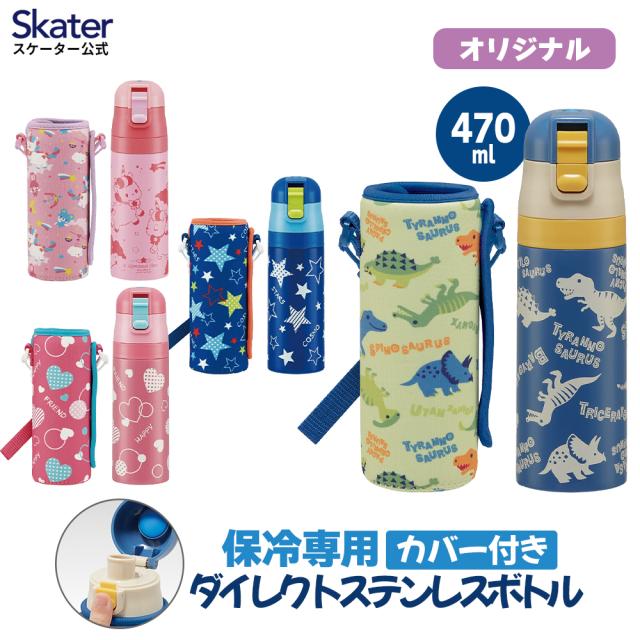 水筒 キッズ 470ml ワンタッチ 洗いやすい ステンレス 男の子 女の子 幼稚園 カバー付き ショルダー ベルト 直のみ 直飲み スケーター KSDC4 保冷 紐付き 恐竜 ディノサウルス ユニコーン ハート 水玉 星 スター アウトドア 男子 女子 ボトル ステンレスボトル 子供 子ども ピンク かわいい 軽量 男子 女子
