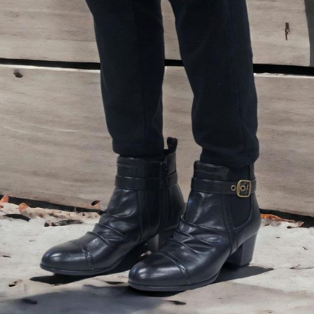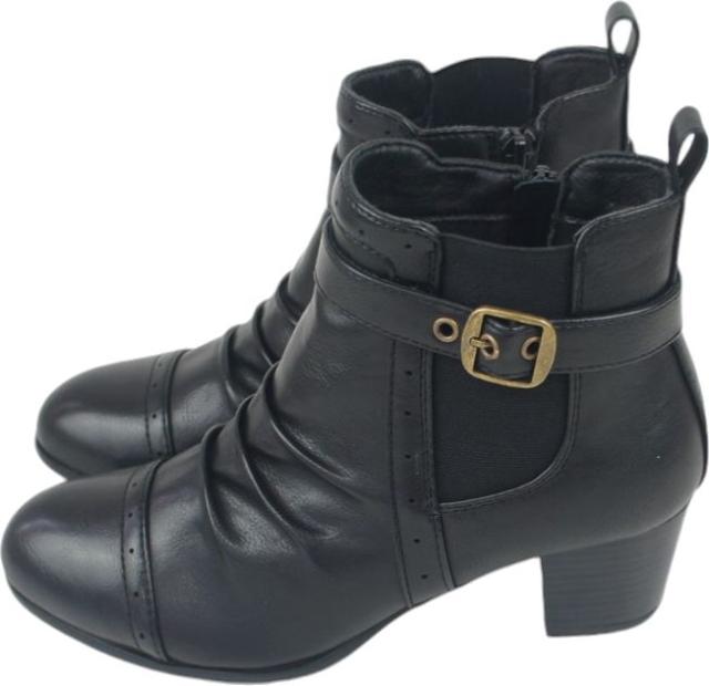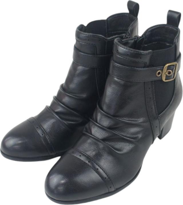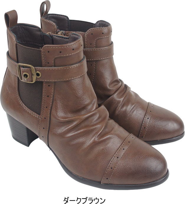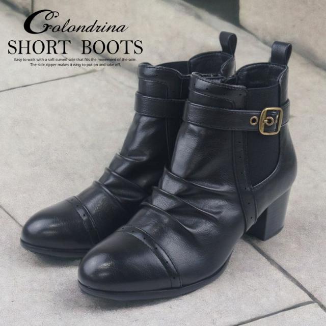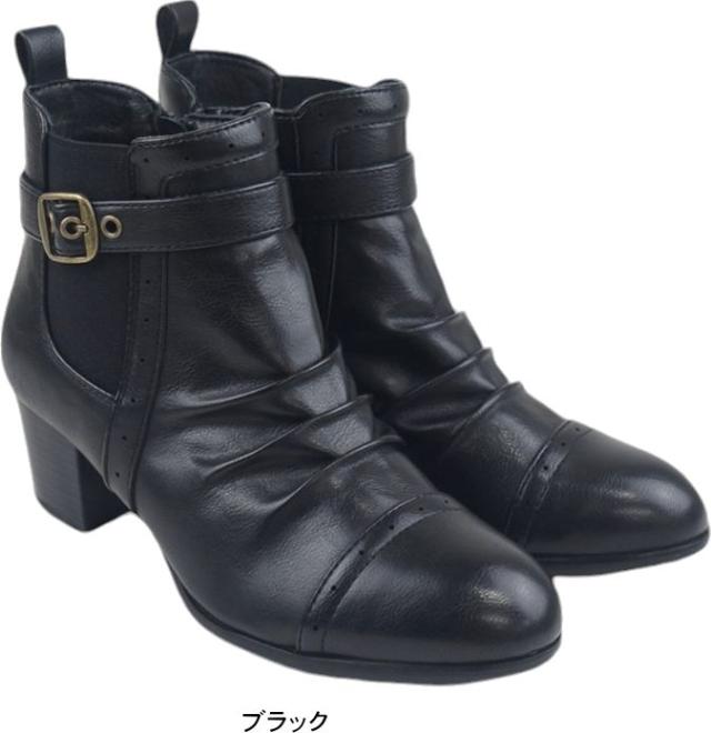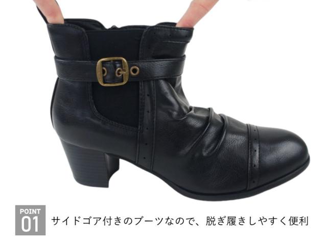 ショートブーツ レディース ローヒール ブーティ ブラック ヒール チャンキーヒール サイドジッパー サイドゴア シャーリング ミセス dytolc5335 母の日 ギフト