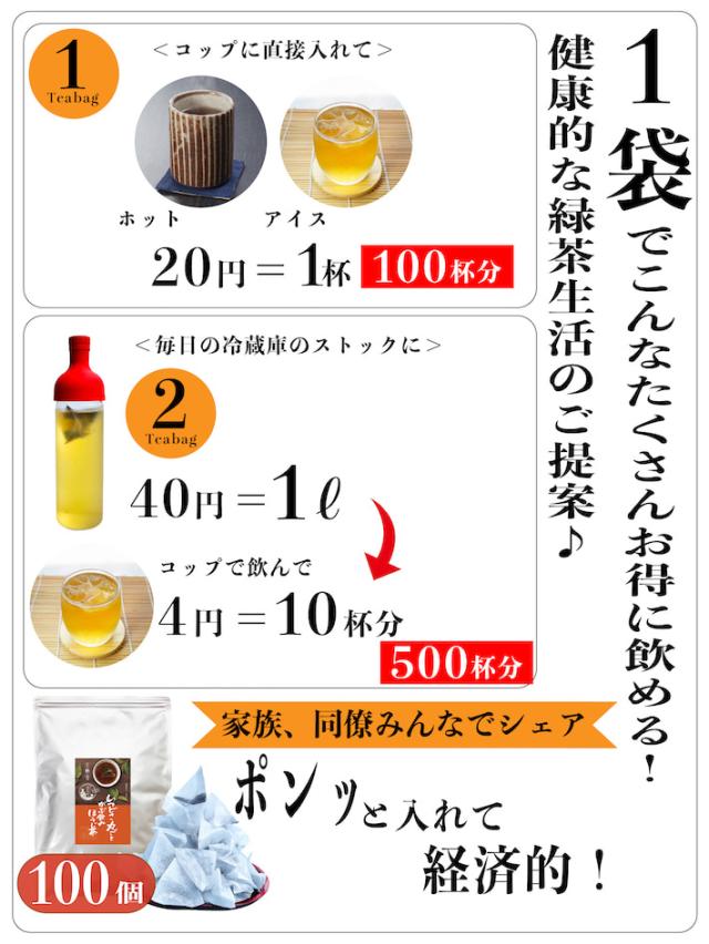 鹿児島茶 ほうじ茶 ティーバッグ 茶葉 送料無料 お徳用 1.5g×100個入 お茶 ティーパック 大容量 カテキン パック 100包 水出し 冷茶 オフィス 業務用日本茶 煎茶 ネコポス いつどこほうじ茶 鵜ノ池製茶