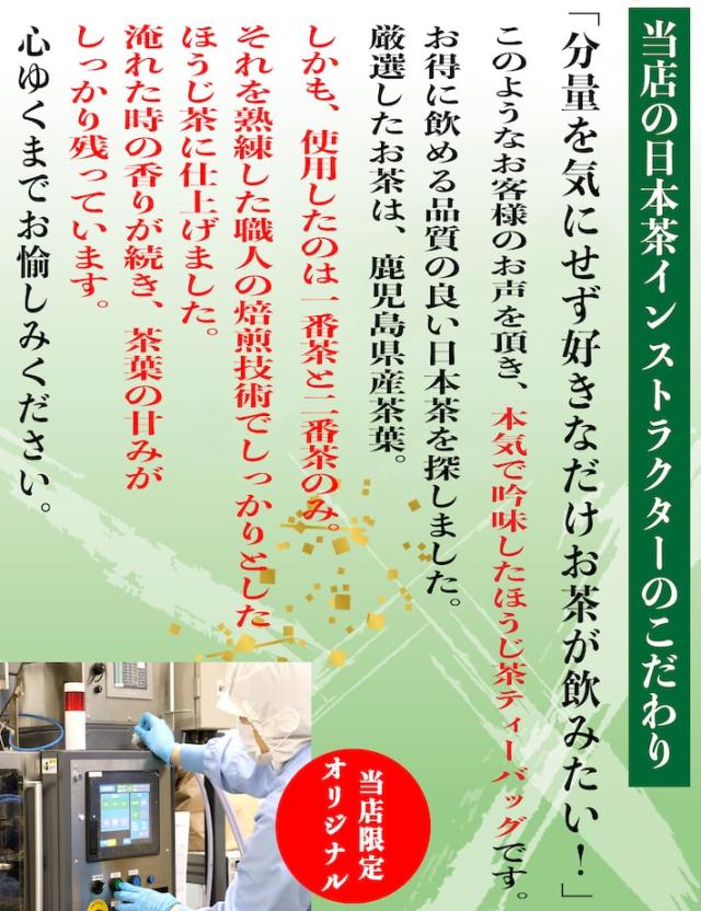 圧倒的コスパのほうじ茶ティーバッグ!「分量を気にせず好きなだけお茶が飲みたい!」お客様の声から生まれたこだわりのティーバッグ茶です