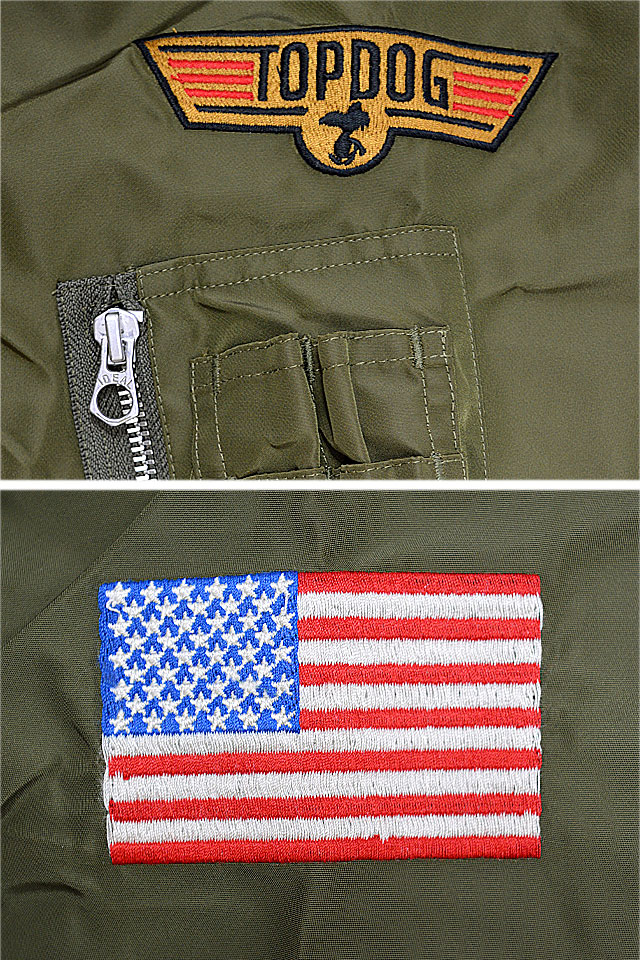 左袖にはMA-1特有のギミックポケットを配し、身頃にはスナップボタン式の斜めポケットを縫い付けました。