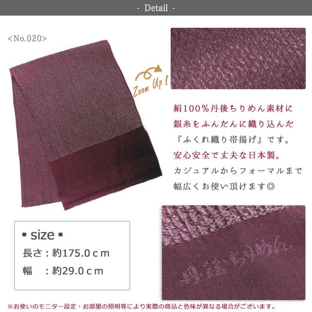 【1枚までメール便発送OK】高級 正絹帯揚げ 丹後ちりめん 銀通し ふくれ織り 絹100% 伝統的工芸品 幅29.0cm 約175cm 7色 くすみ ダスティ ベージュ 白 茶 黒 和装小物 着付け小物 レディース 女性 お洒落 カジュアル フォーマル 振袖 着物 訪問着 付け下げ 袷 色無地
