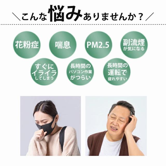 - 首に掛けるだけで、PM2.5やタバコの煙、花粉をしっかり除菌してくれます。
