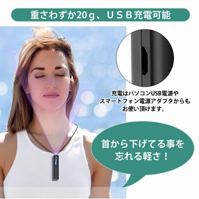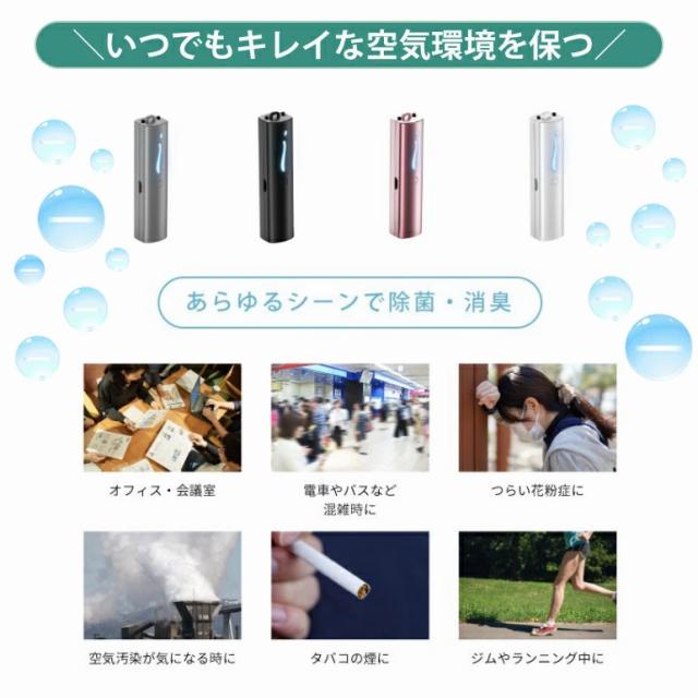 - 軽量でコンパクトなので、首に掛けて出かけるのも簡単。充電式で、持ち歩きもラクラク。外出先でも清潔な空気を保てるので、とても安心しています。