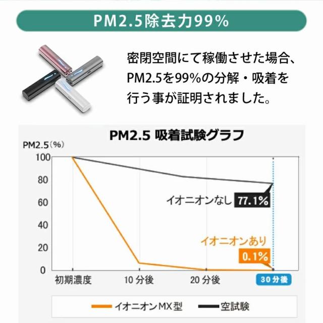 - 外出先でも気軽に使えます。PM2.5や花粉、タバコの煙など、気になる匂いや汚染物質をしっかり除去してくれるので、快適に過ごせます。