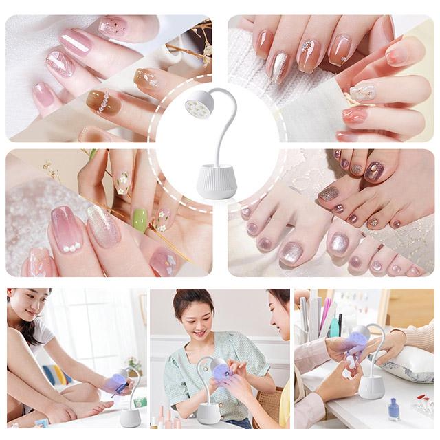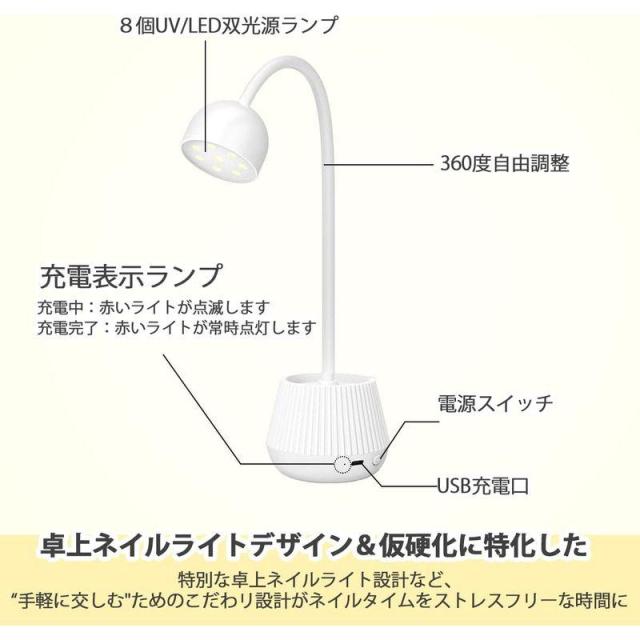 【充電式コードレス使用】ネイルライトはベッテリー内蔵の充電式なのでコードレスでご使用いただけます。邪魔な配線がなくテーブルの上に実施できます。