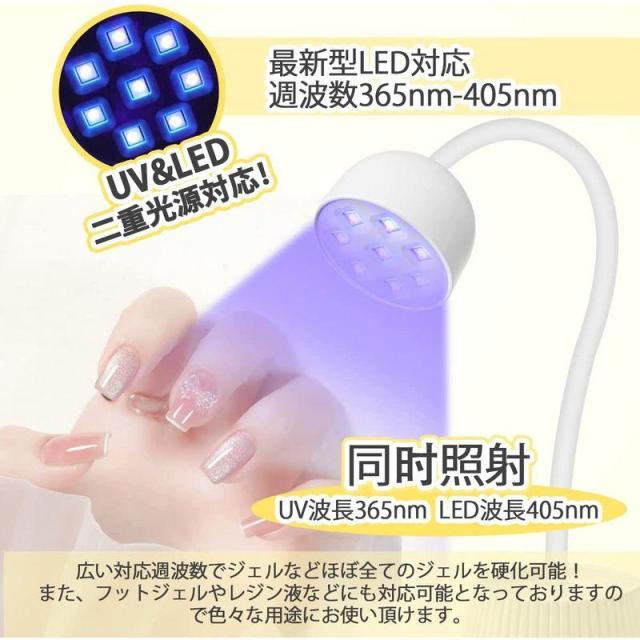 「クーポン配布中」「即納」ネイルライト UVネイルライト ledライト ジェルネイル ライト ジェルネイル ライト ネイルドライヤー ジェルネイルライト 24W 硬化用UVライト 8個LED 二重光源 タイマー機能付き 360°回転 手足両用 充電式 母の日 バレンタイン プレゼント