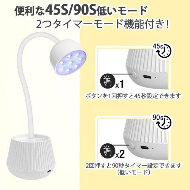【タイマー機能】45秒・90秒のモードがありやりたい仮硬化によって切替できるから便利です。仮硬化、大きなパーツの仮止め、ジエルの流れ防止などたくさんの用途が満足できる。