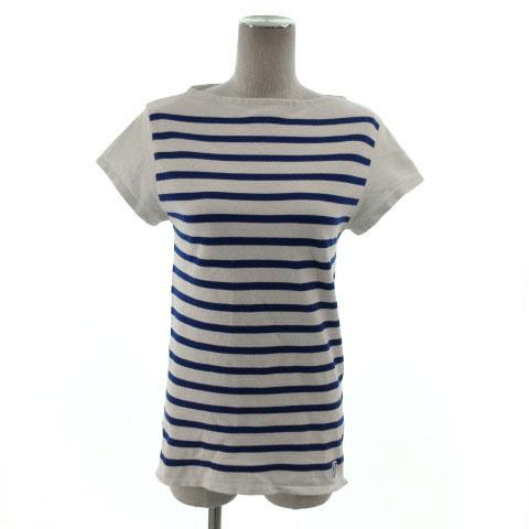 【中古】オーチバル ORCIVAL オーシバル カットソー スラッシュドネック 半袖 ワッペン フランス製 ボーダー 白 青