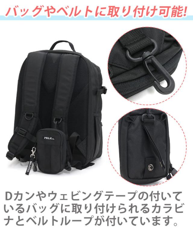 シーンに合わせてショルダーバッグとして使ったり、リュックに取り付けて小物入れとして使ったりと様々な使い方ができます。