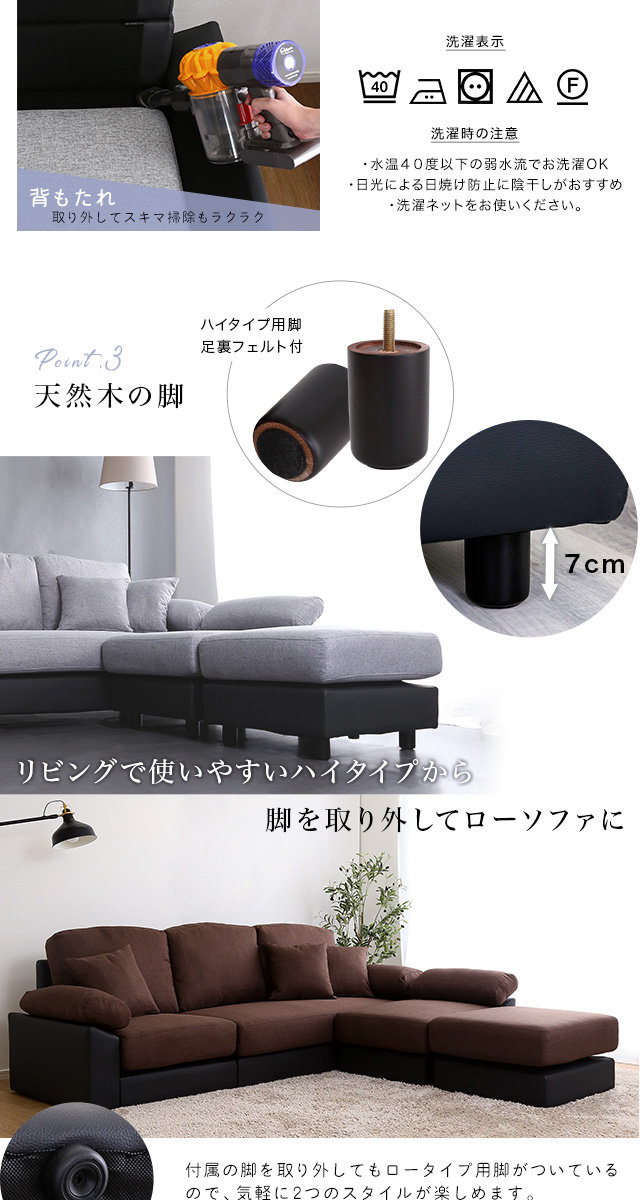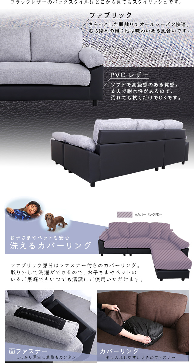 丸洗いできるカバー付き 5人掛け コーナーソファー 【送料無料】 L字ソファー L型ソファー おしゃれ リビングソファー レイアウト オットマン カウチソファー 大きめ