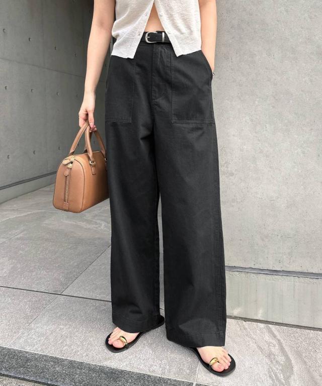 やや腰で履く、ゆったりとしたワイドシルエット。