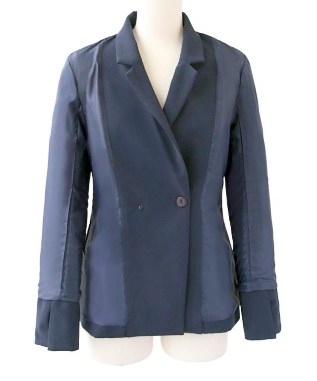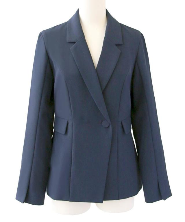 ダブルデザインでも、ワンボタンで軽く止めるだけの、堅すぎない抜け感のあるテーラードジャケットです。