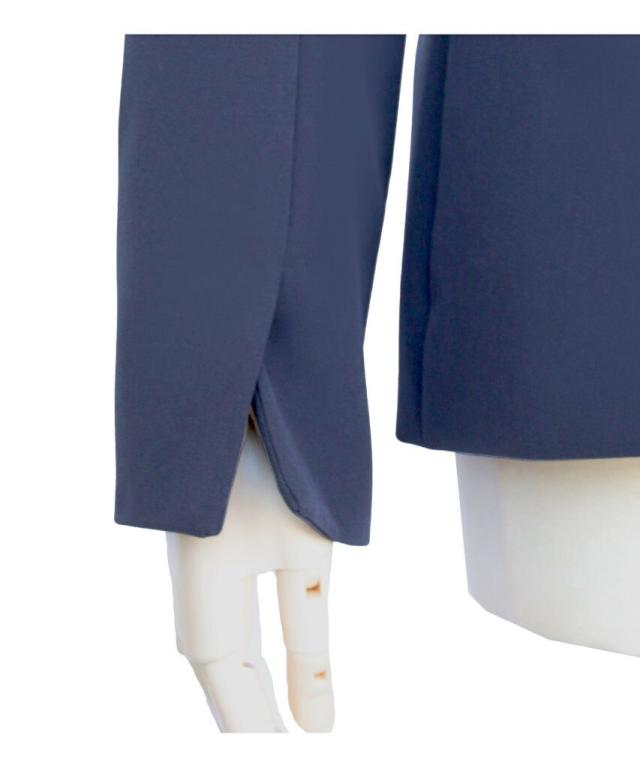 袖前側のスリットと、後ろ身頃のロングスリットが印象的に魅せてくれます。