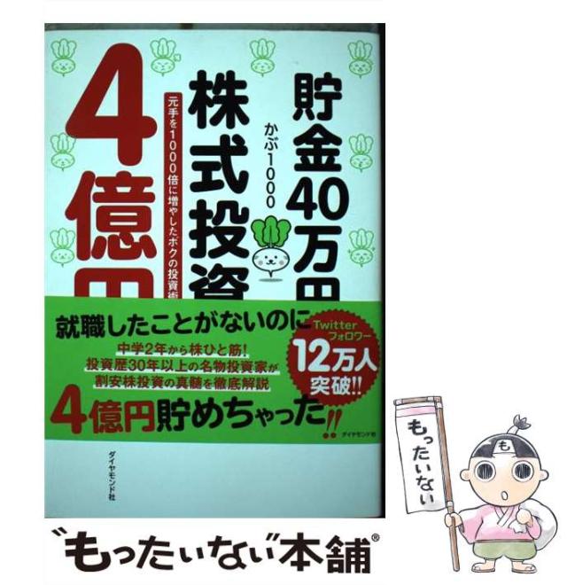 商品名:【中古】 貯金40万円が株式投資で4億円 元手を1000倍に増やしたボクの投資術 / かぶ1000 / ダイヤモンド社 [単行本(ソフトカバー)]【メール便送料無料】