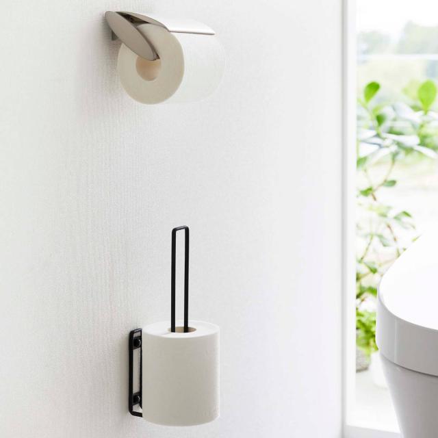 トイレットペーパーを 2個浮かせて収納できるトイレットペーパーホルダーです。ホルダー部に幅があるのでトイレットペーパーをしっかりとホールドしてくれます。狭いトイレ空間も壁面を利用して収納することで使いやすく、スッキリ整います。