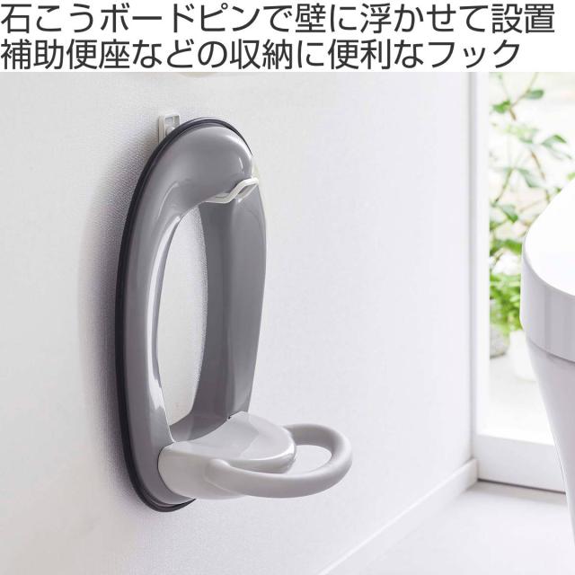 補助便座やトイレブラシなどを浮かせて収納できるフックです。狭いトイレ空間も壁面を利用して収納することで使いやすく、スッキリ整います。