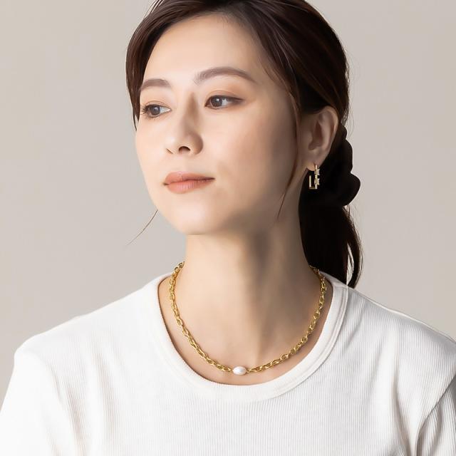 ネックレス レディース ゴールド 淡水パール ショートネックレス 大きめ チェーン 18Kコーティング 金属アレルギー ニッケルフリー デイリー シンプル カジュアル オケージョン オシャレ 30代 40代 50代 ブランド