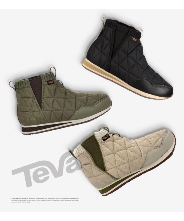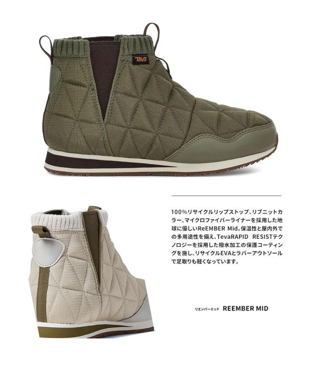 teva ショートブーツ レディース 撥水加工 裏起毛 暖かい 防寒 秋 冬 キャンプシューズ アウトドア 歩きやすい サイドゴア 履きやすいTEVA REEMBER MID テバ リエンバー ミッド ベージュ 黒 ブラック カーキ グリーン 緑 1123431