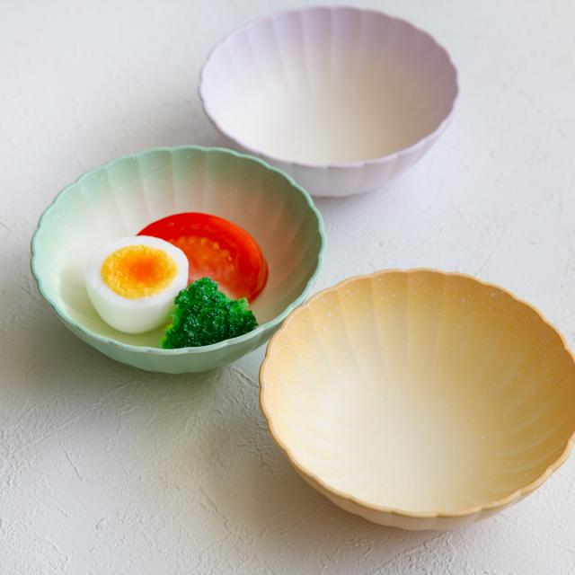 淡いカラーをグラデーションにした柔らかい雰囲気のボウルです。シェルモチーフが可愛らしく、使う度気分が上がりそうです。サラダや、和え物、デザートやフルーツを盛り付けるのにちょうどいいサイズ感です。