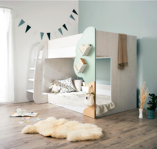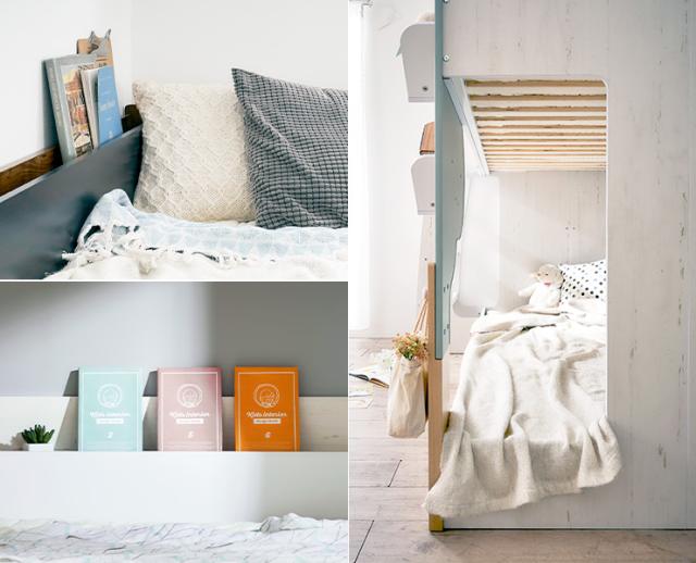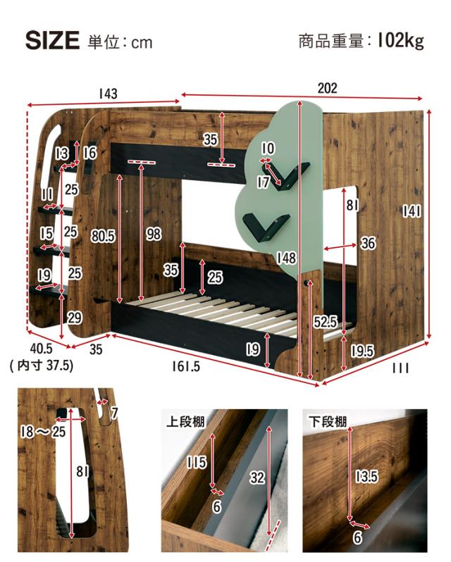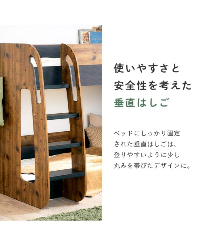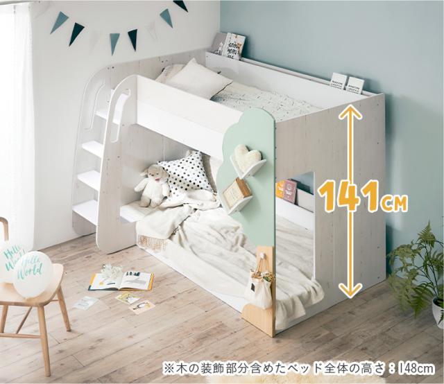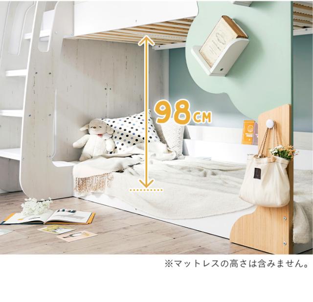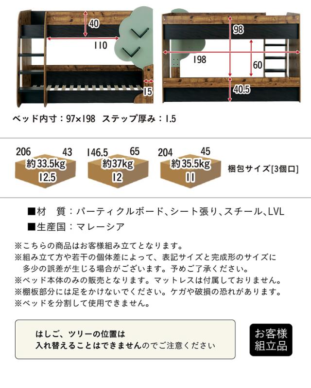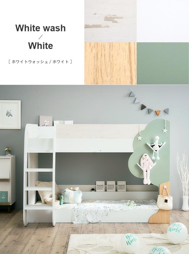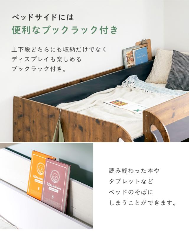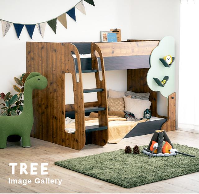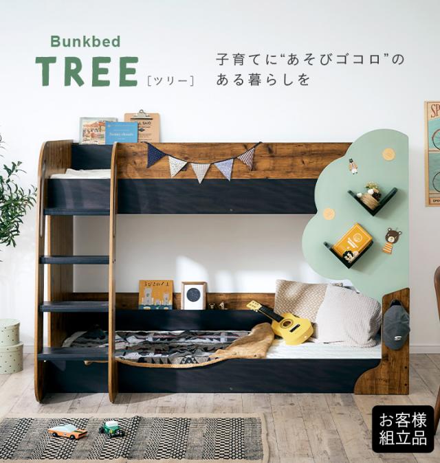 【マットレス付き】二段ベッド 2段ベッド TREE(ツリー) 2色対応 二段ベット 2段ベット マットレスセット ロータイプ ローベッド ブックラック 絵本棚 絵本ラック 飾り棚 子供用ベッド 木製 パイプ おしゃれ かわいい