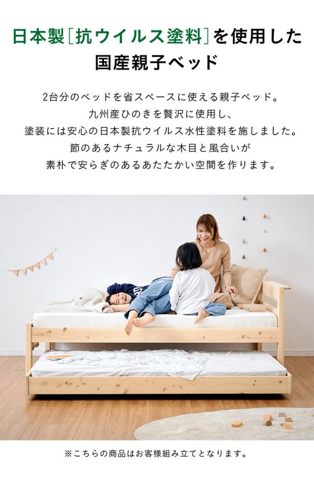 【マットレス付き】国産 親子ベッド S+SS Hinoki(ヒノキ) 二段ベッド 2段ベッド マットレスセット ロータイプ スライドベッド 子ベッド 収納ベッド下収納 木製 檜 桧 シングルベッド おしゃれ