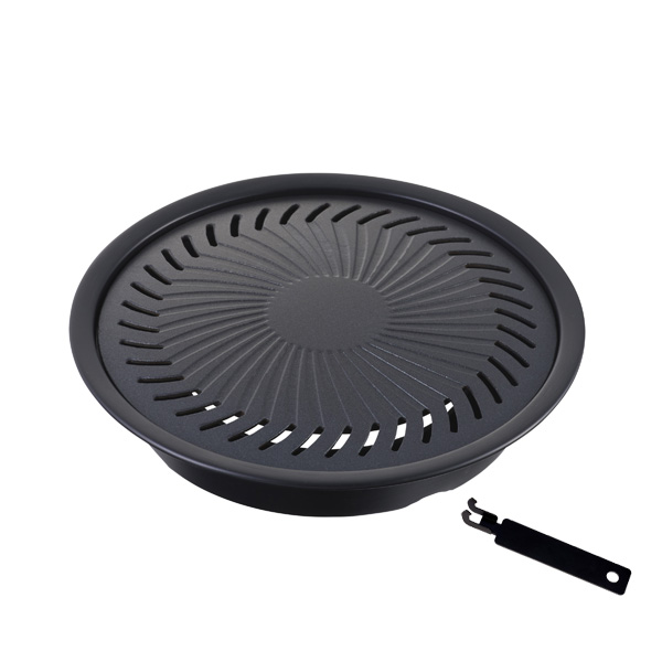 材質:プレート/アルミダイカスト(フッ素樹脂加工) 水受皿/スチール(焼付塗装) 取っ手/スチール(電着塗装)